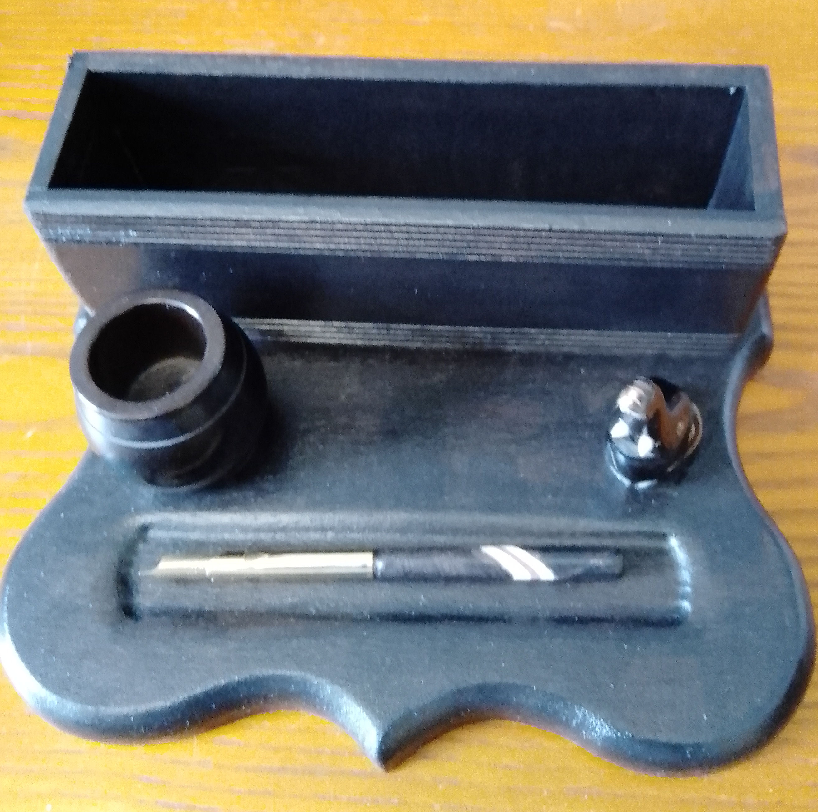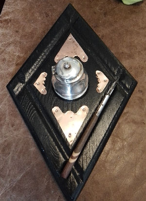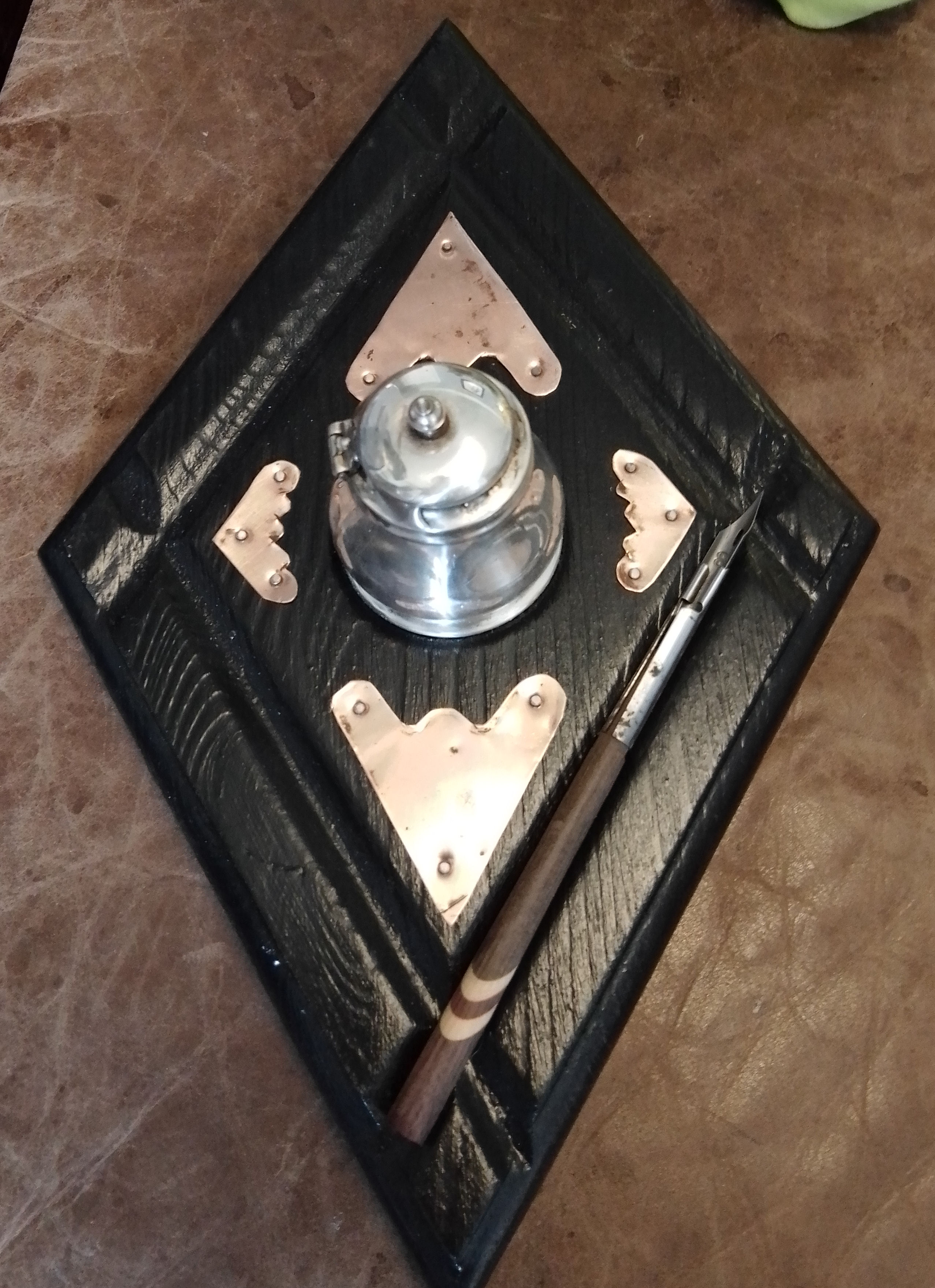 Ebonised Oak Diamond Shape Inkstand made from recycled wood, copper decorations, repurposed condiment pot inkwell £29.99 plus p&p |
