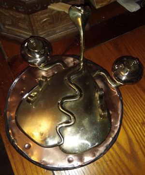 Vintage handmade Cobra inkstand. Made from copper and brass. Lidded inkpots. Very unusual item. A real must have for the collector. Set on a copper covered base by Mick @ Spooktacula Exclusive Designs £95.00 plus p&p