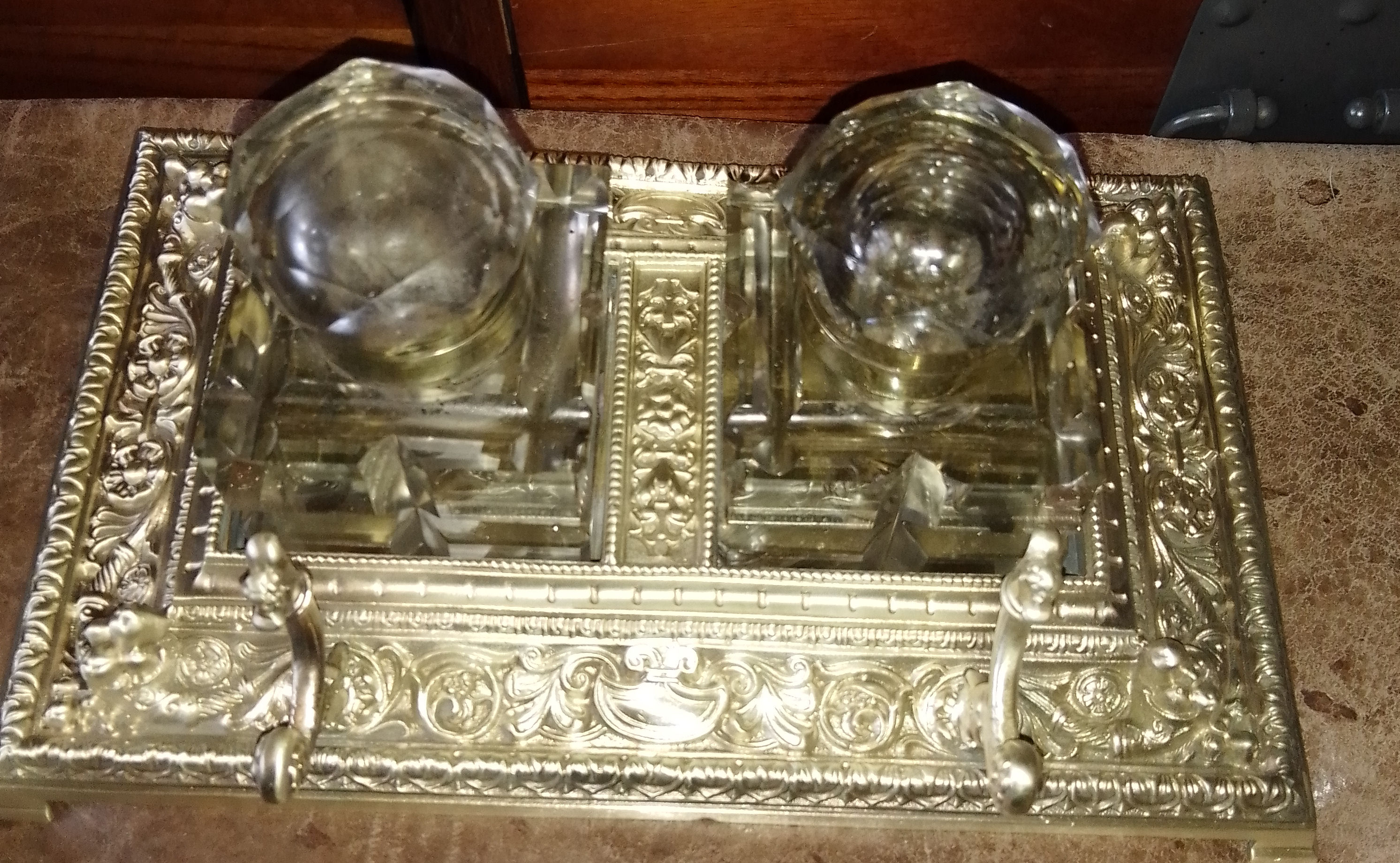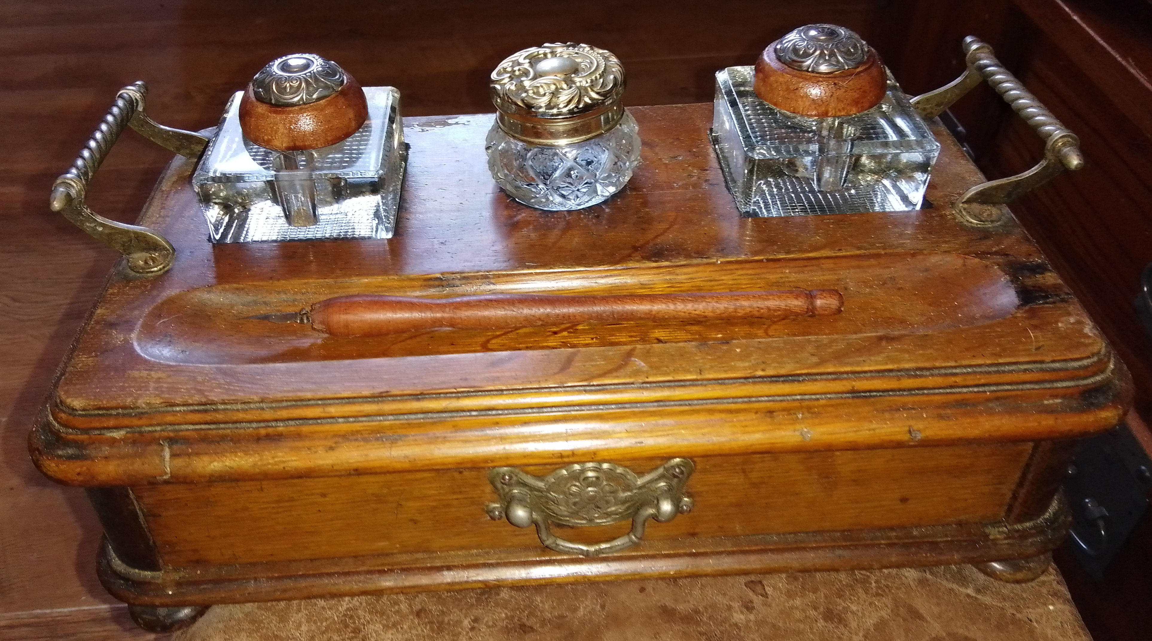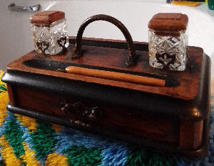 Antique Sympathetically Renovated Inkstand with Drawer (AA), modern glass inwells, nice item £28.00 plus p&p